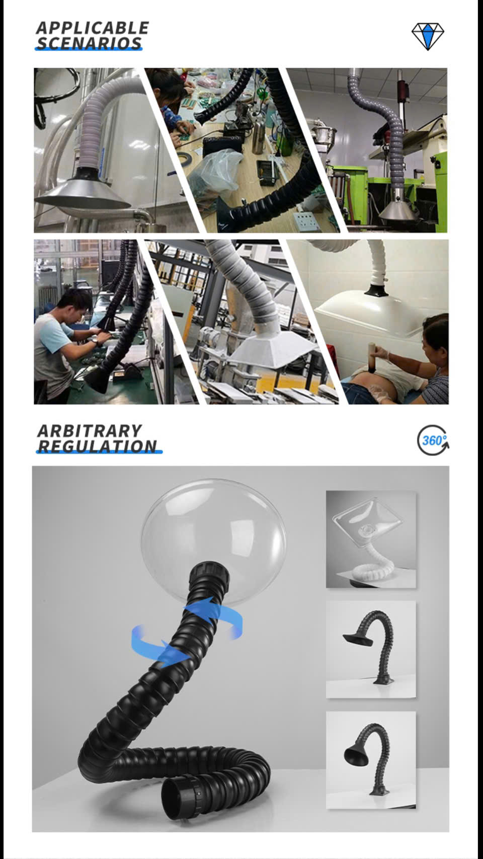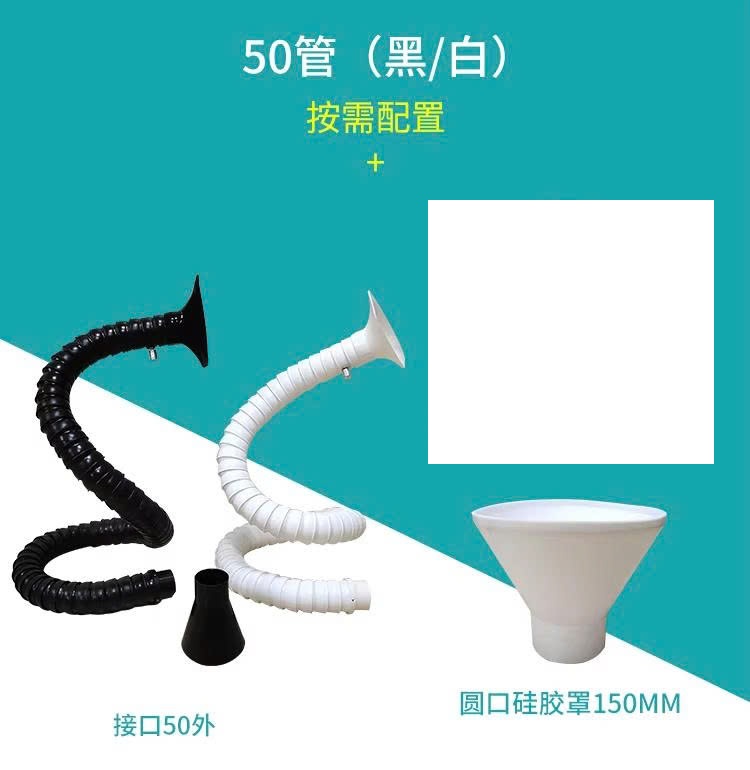 50mm Fume extractor arm with one Silicone hood Material: Plastic Color: Black/White Diameter: 50mm Length: 1.5 Meters |