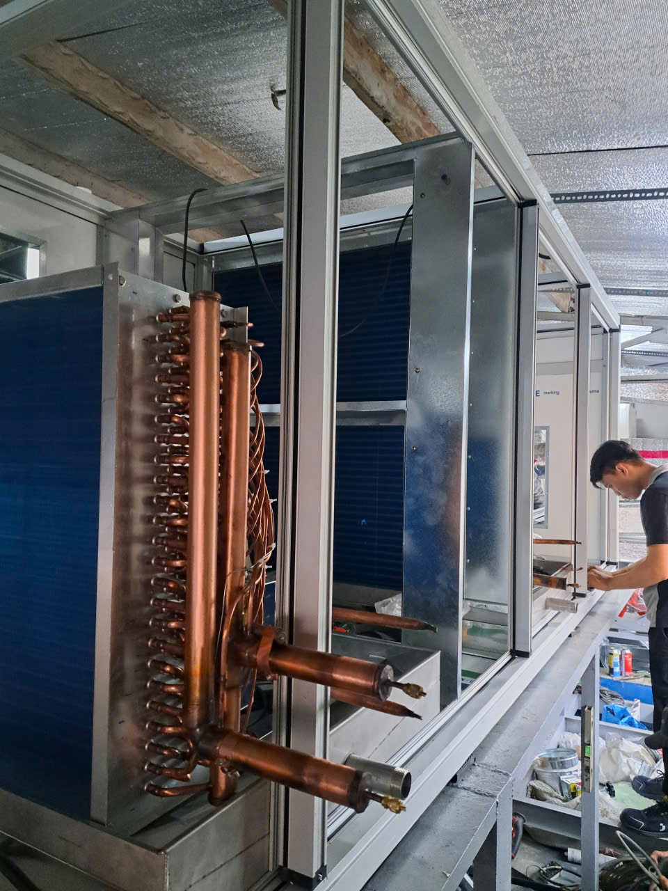 Máy hút ẩm được tích hợp vào AHU nhằm làm khô không khí. Đặc biệt phù hợp đáp ứng được nhiệt độ và độ ẩm thấp.